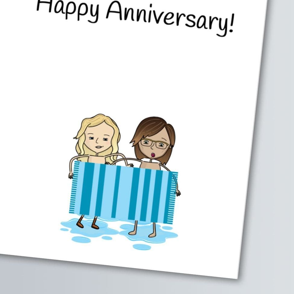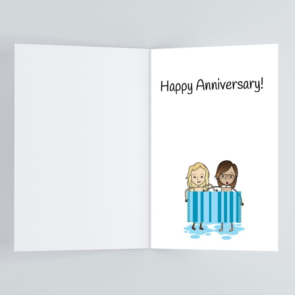 Make this anniversary a sexy, bubbly one with this personalized anniversary greeting card. This card features a Lovemoji of you and your spouse.